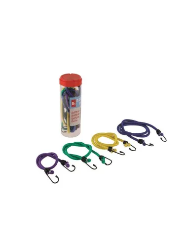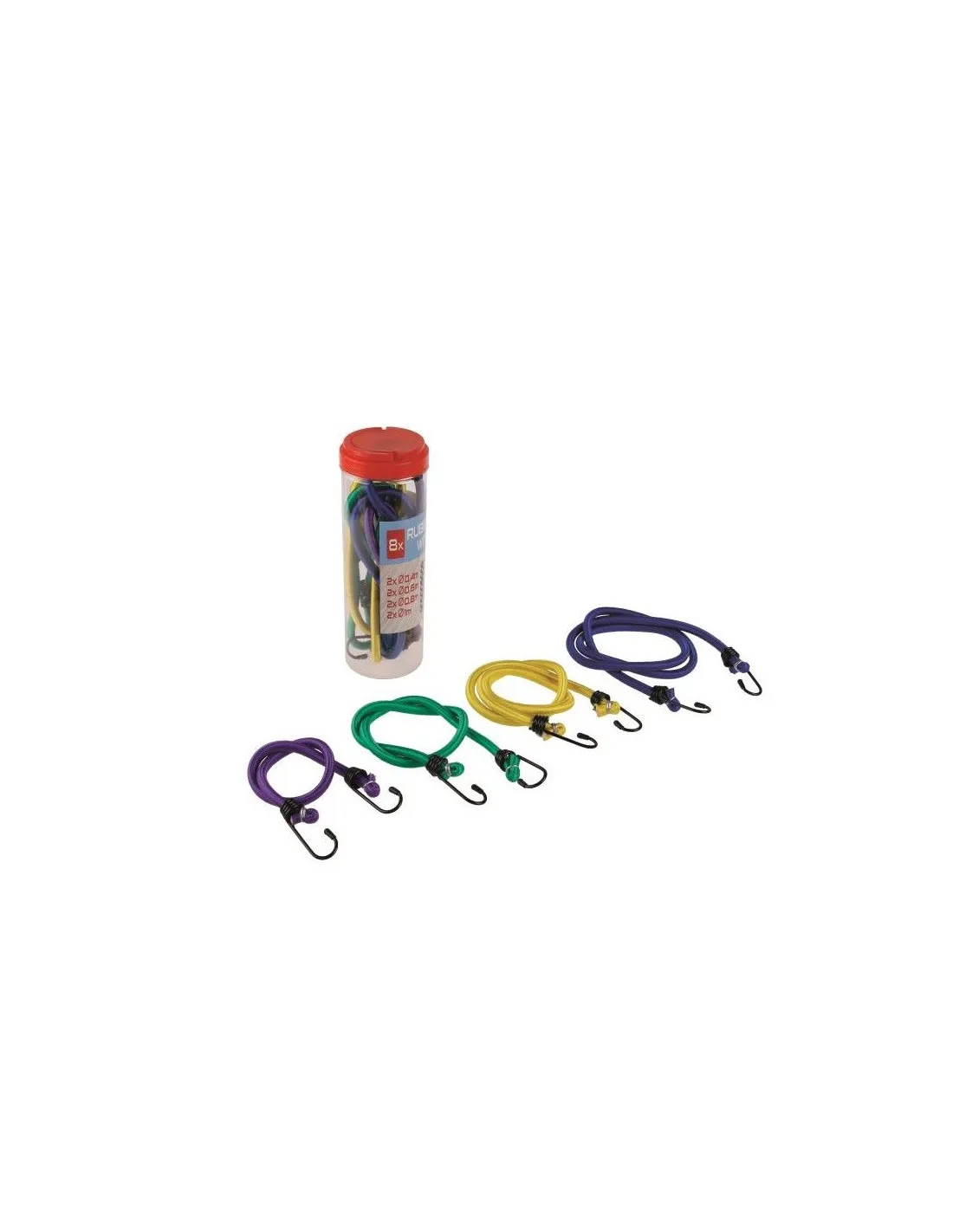 Sada klasických elastických popruhů s ocelovými háky. 2 x délka 0.4, 0.6, 0.8, 1 m. Jsou určené pro fixaci předmětů. Popruh je tvořen z gumových vláken potažených opletem ze syntetické elastické tkaniny.