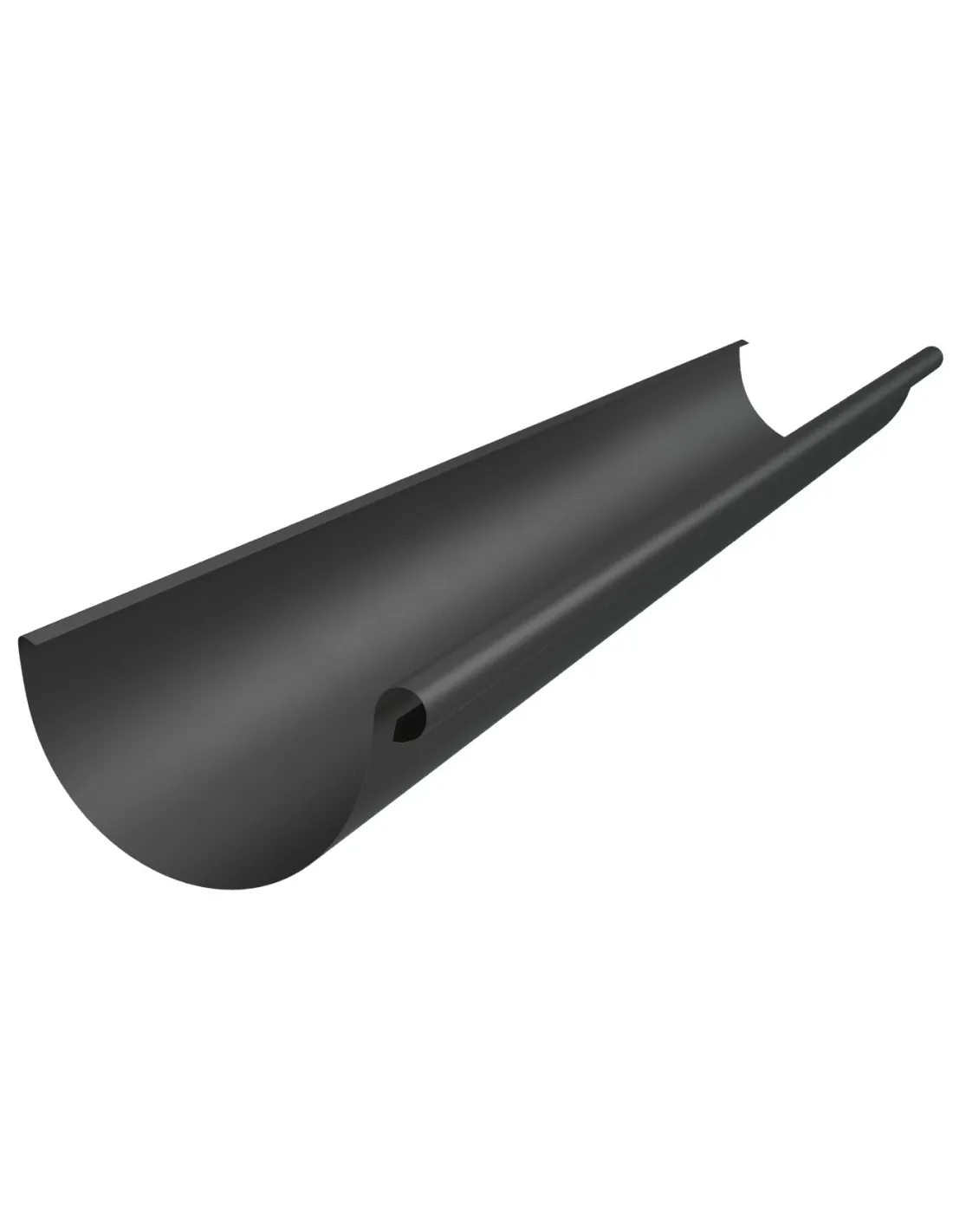 Půlkulatý podokapní žlab v pozinkovaném lakovaném provedení.
