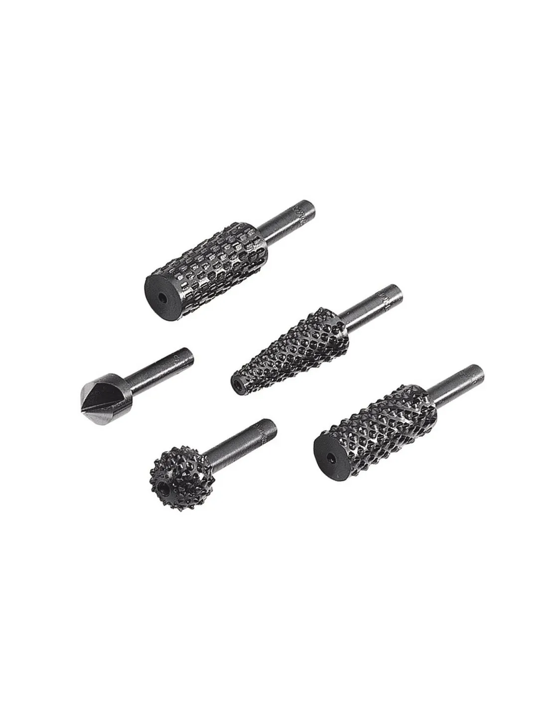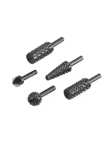 Pro přípravu drážek a pro rychlý úběr materiálu. Obsah: 1 x profilová rašple, průměr 12 mm, cylindrická, dřevo, 1 x profilová rašple, průměr 5 – 12 mm, kuželovitá, dřevo, 1 x profilová rašple, průměr 14 mm, kulová, dřevo, 1 x profilová rašple, průměr 12 mm, cylindrická, kovy, 1 x záhlubník, průměr 12 mm, dřevo