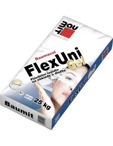 Lepicí hmota Baumit Baumacol FlexUni Gel přináší nový standard v lepení obkladu. Vzhledem k jemné a krémové konzistenci lepidla je její zpracovatelnost snadná a zároveň bezpečná, díky zatřídění C2T S1. Baumacol FlexUni Gel je vhodný pro savé i nesavé obk