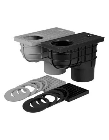 Používá se pro svádění dešťových a povrchových vod. Obsahuje těsnící kroužky pro připojení dešťových svodů různých průměrů, víko okapového svodu lze nahradit mřížkou, obsahuje návod k instalaci, třída zatížení K3 - 300 kg. Výrobek obsahuje suchou protizápachovou klapku, zabraňující zpětnému zápachu z kanalizačního potrubí. Odolnost do 90 °C, norma EN 1253-1.