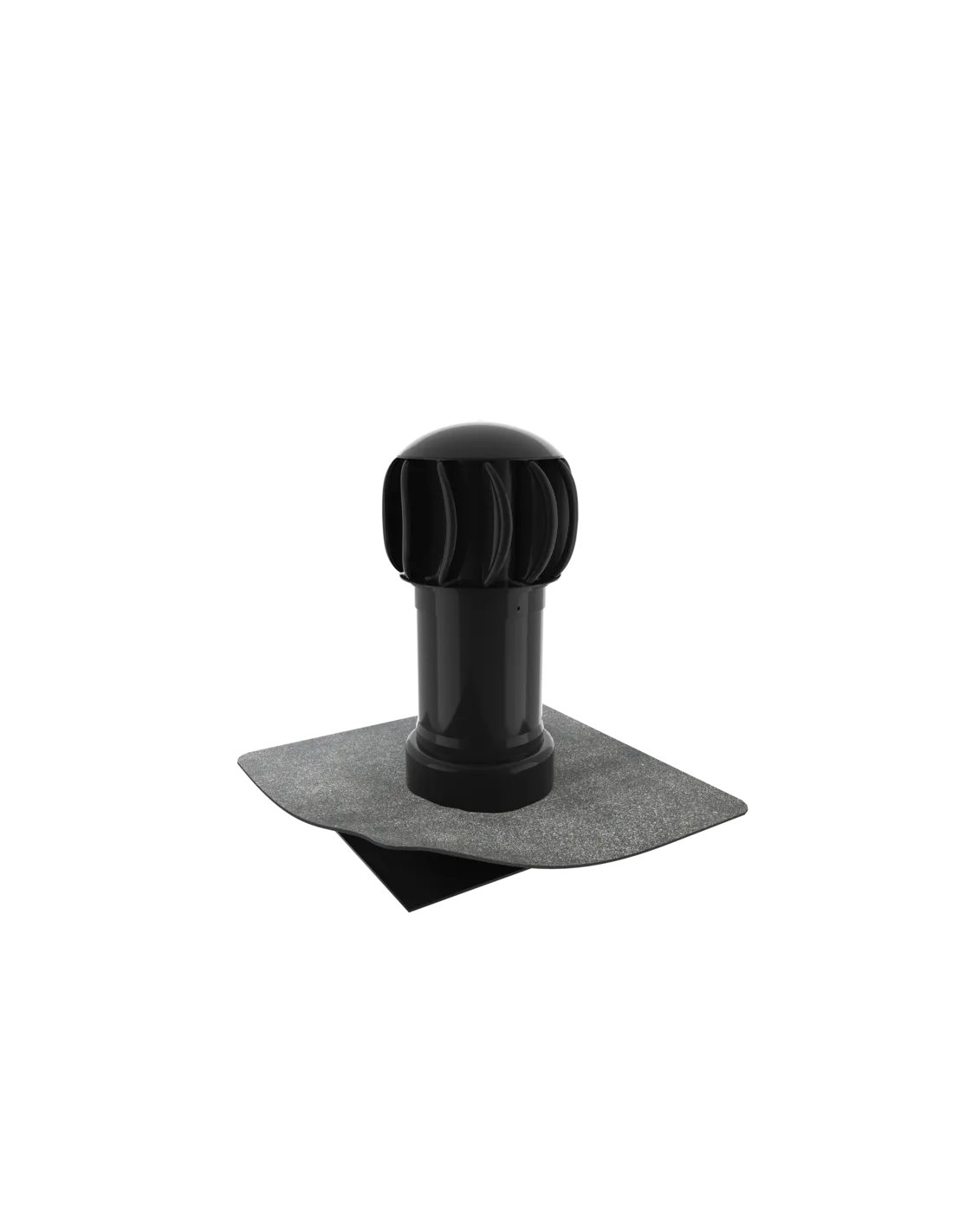 Ventilační turbína TOPWET s integrovanou manžetou z modifikovaného asfaltového pásu. Výška nad izolací 250 mm.