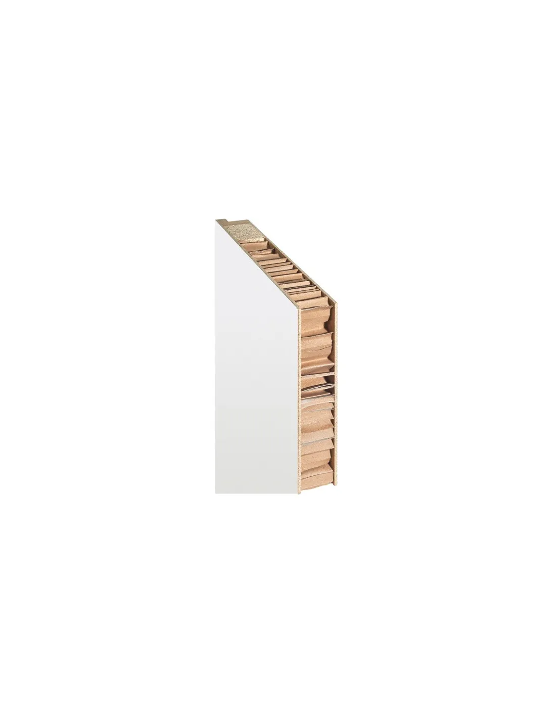 Dveřní křídlo určené do interiérů, je tvořené dveřním rámem z MDF materiálů oboustranně opláštěném HDF deskami.Výplň voština, nejběžněji využívaná výplň do interiérových dveří. Jedná se o tvrzený vrstvený papír ve tvaru včelích plástev (šestiúhelníků) s průměrem oka 25 mm. Hladký povrch dveřního pláště je opatřen lakem v bílé barvě. Dveře jsou standardně opatřeny mezipokojovým zámkem s klíčem a třemi dveřními závěsy (panty).