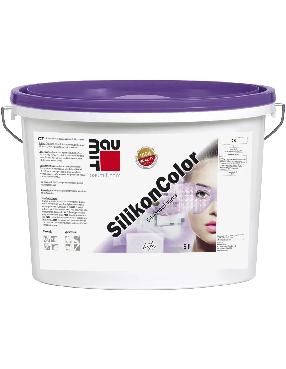 Vysoce paropropustný silikonový nátěr. Vysoce vodoodpudivý, odolný vůči znečistění, použitelný v exteriéru. Možnost probarvení do různých odstínů dle vzorníku Baumit.
