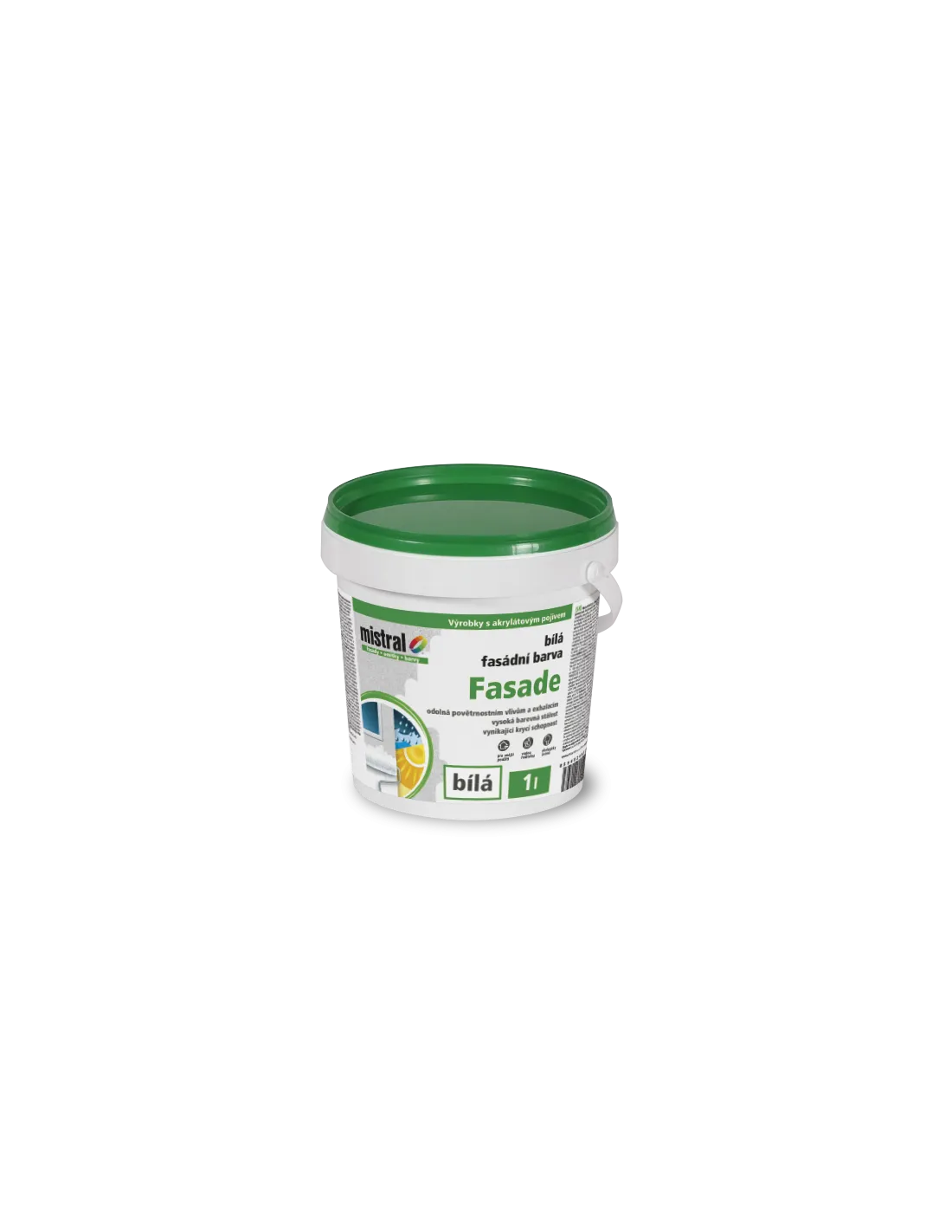Vysoce jakostní akrylátová fasádní barva s výbornou plnivostí, kryvostí a světlostálosí, odolná povětrnostním a průmyslovým vlivům.