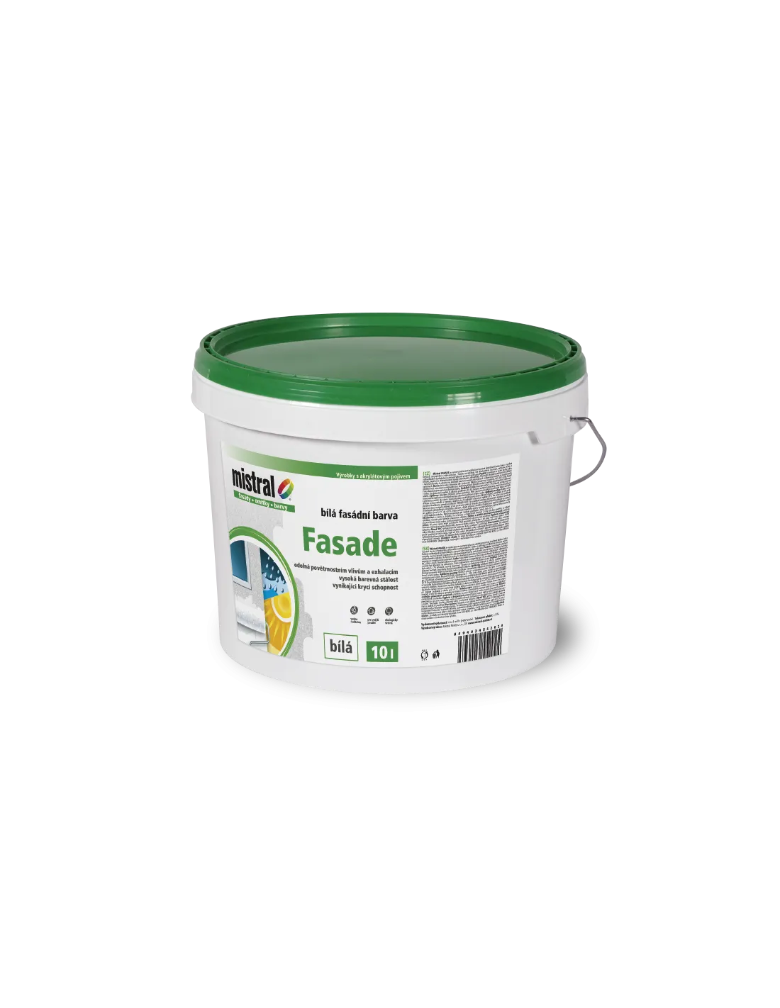 Vysoce jakostní akrylátová fasádní barva s výbornou plnivostí, kryvostí a světlostálosí, odolná povětrnostním a průmyslovým vlivům.