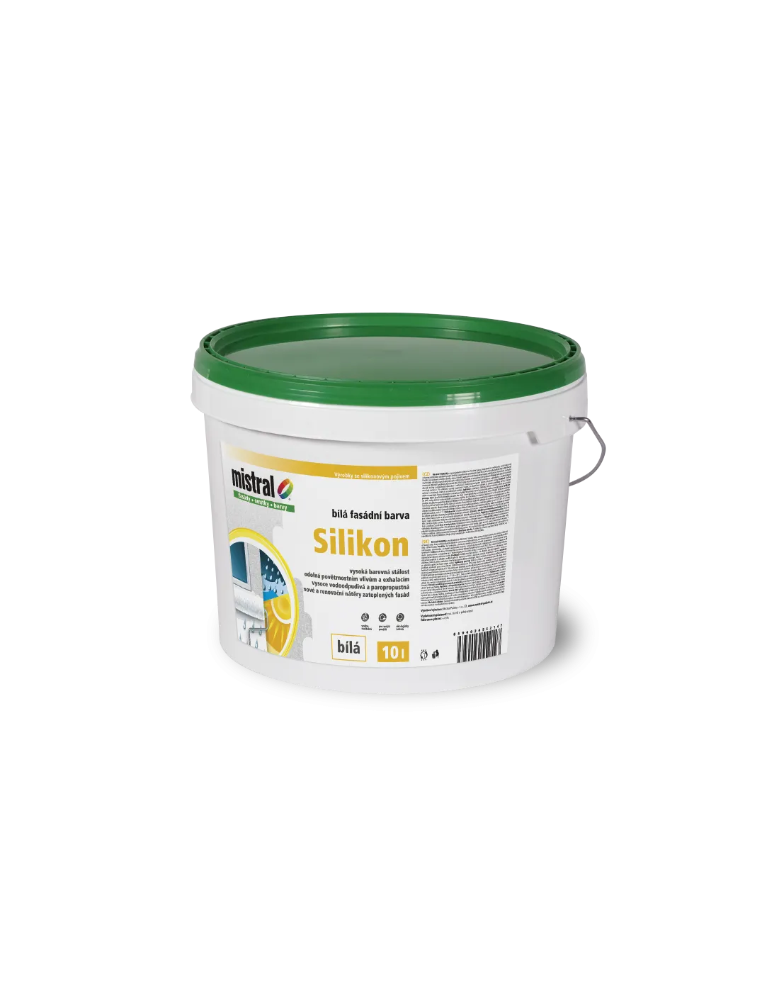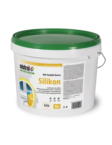 Silikonová fasádní barva, propustná pro vodní páry, odolná vůči prachu a povětrnostním vlivům.