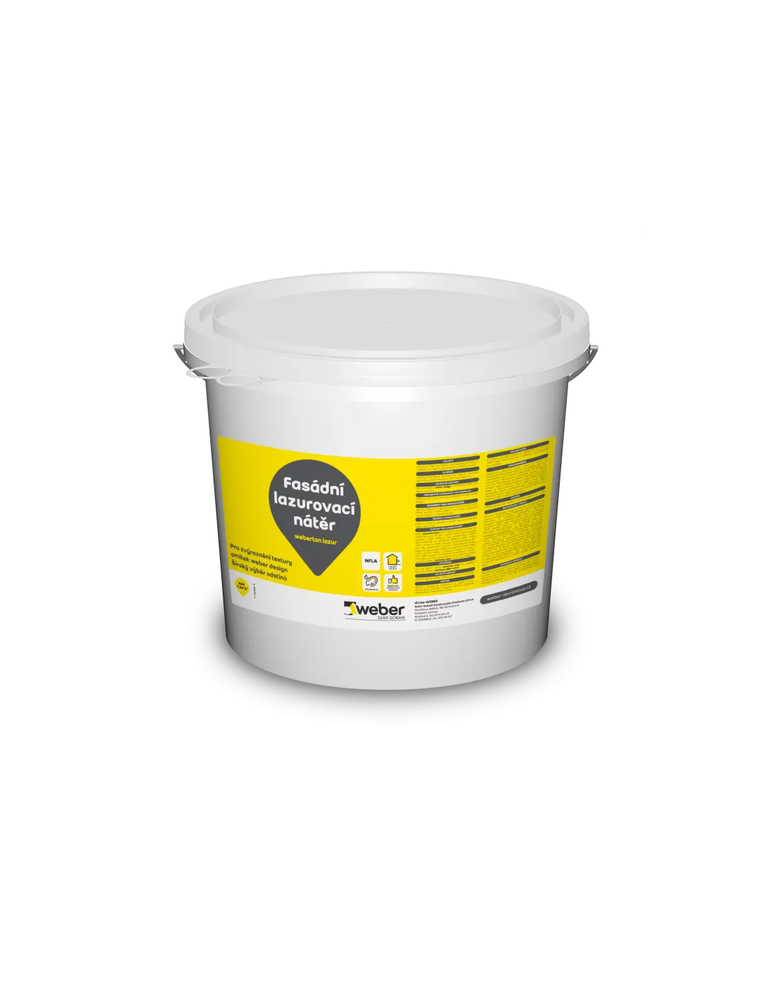 Fasádní nátěr se sníženou krycí schopností obsahující silikonovou disperzi, připravený k přímému použití. Je určen k použití v kombinaci s omítkou weberpas silikon wood. Slouží pro barevné zvýraznění kresby dřeva při vytváření imitace dřevěného povrchu na fasádě omítkou weberpas silikon wood.