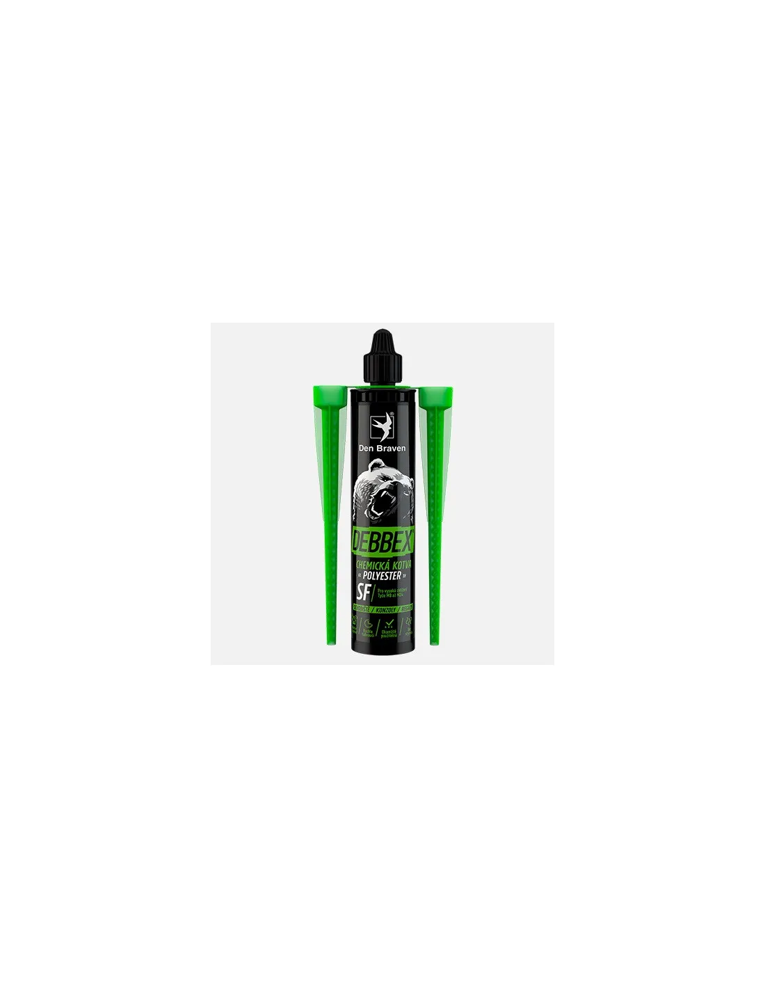 Dvousložkový chemický kotvicí systém na bázi polyesterových pryskyřic pro velice rychlé kotvení s vysokou pevností, vytvrzující chemickým procesem. Kotvení mechanického upevňování výkladů, garážových vrat, výkladních skříní, ocelových tyčí, atd. Kotvení do podkladů z betonu, tvárnic, plného zdiva, dutých cihel apod.