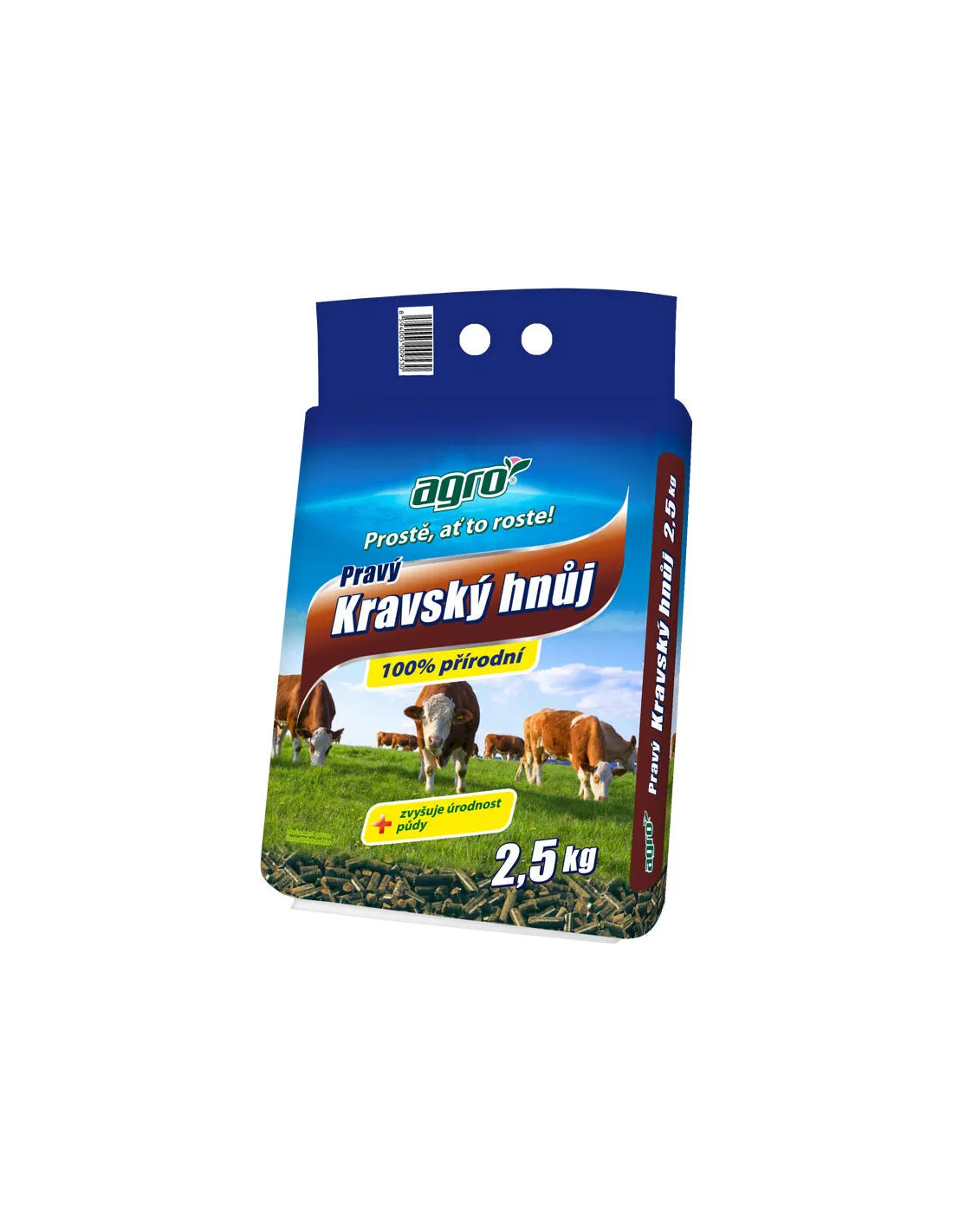 Agro Pravý kravský hnůj je organické hnojivo vyráběné z kravského hnoje pomocí procesu sušení a lisování. Granulovaná forma hnojiva usnadňuje manipulaci. Hnojivo používáme k základnímu hnojení před výsadbou rostlin vyžadující organické hnojení (brambory, řepa, celer, brukvovitá, plodová zelenina). Dále jeho použití je vhodné pro vyhnojení květinových záhonů a při přípravě půdy před výsadbou stromů a keřů. Ganulovaná forma hnojiva – pro snadnější manipulaci (sušené peletky).
