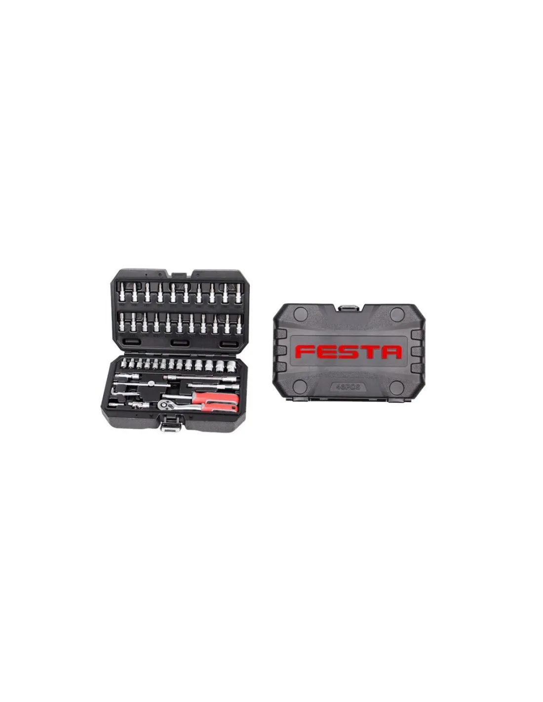 Gola sada značky FESTA je uložena v odolném plastovém kufříku. Díly a hlavice, ze kterých se sada skládá, jsou vyrobeny z chromvanadiové oceli. Kvalita zaručena, velikost ráčny: 1/4 , prodloužení 1/4": 50; 100 mm , šroubovák na hlavice: 1/4, prodloužení flexi: 1/4 , trhák: 1/4 , kloub: 1/4 , hlavice 1/4": 4; 4,5; 5; 5,5; 6; 7; 8; 9; 10; 11; 12; 13; 14 mm , bity: 22 ks , imbus: 3 ks .