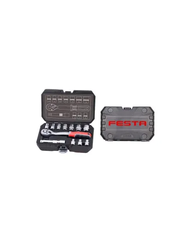 Gola sada značky FESTA je uložena v odolném plastovém kufříku. Díly a hlavice, ze kterých se sada skládá, jsou vyrobeny z chromvanadiové oceli. obsah balení:ráčna 1/2",prodloužení 1/2": 125 mm,hlavice 1/2": 10; 11; 12; 13; 14; 15; 17; 19; 22; 24 mm.