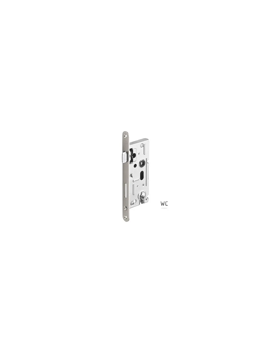 Zadlabací zámek do dřevěných dveří. Tento zámek je levopravý. To znamená, že jej můžete namontovat do dveří s levým i pravým zavíráním. WC sada, se spodním čtyřhranem 6x6 mm. Rozteč zámku 72 mm (měřeno od středu čtyřhranu kliky na střed osy klíče).
