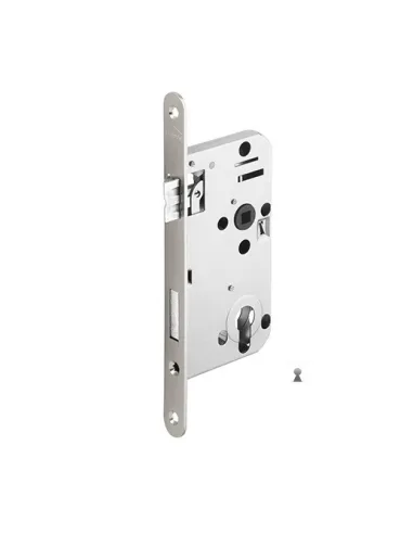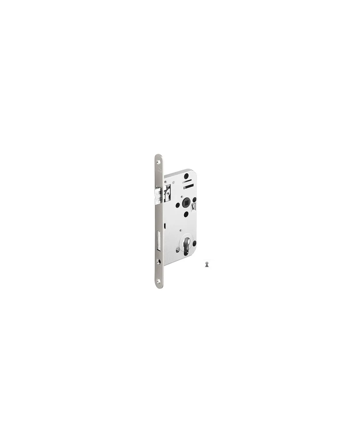 Zadlabací zámek do dřevěných dveří. Tento zámek je levopravý. To znamená, že jej můžete namontovat do dveří s levým i pravým zavíráním. Otvor pro dozický klíč. Rozteč zámku 90 mm (měřeno od středu čtyřhranu kliky na střed osy klíče).