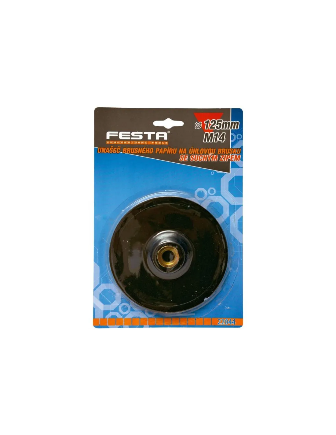Unašeč smirkového papíru do úhlové brusky. Upnutí na suchý zip. Závit M14.