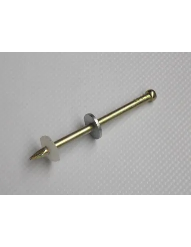 Nastřelovací hřeb. Jejich tepelné zušlechtění – kalení - umožňuje připevňování těchto prvků na betonový a ocelový podklad.