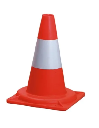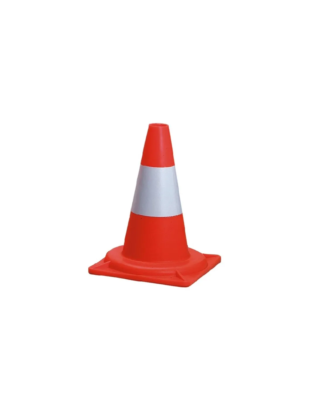 Výstražný kužel malý, červený s dvěma bílými pruhy. Materiál: PE.