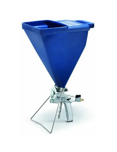 Jednoduché avšak velmi užitečné zařízení poháněné vzduchem o tlaku 2 - 6 Bar.Umožňuje stříkat tekuté až patovité materiály zejména omítky v zrnitostech do 3 mm. •S kotoučem s 9 tryskami (vrtání od 4-13 mm), regulace množství materiálu a vzduchu, 6 l plastová nádoba.•Na zpracování všech druhů maltových směsí, stěrkových hmot, dekoračních omítek, tekutých tapet, apod.