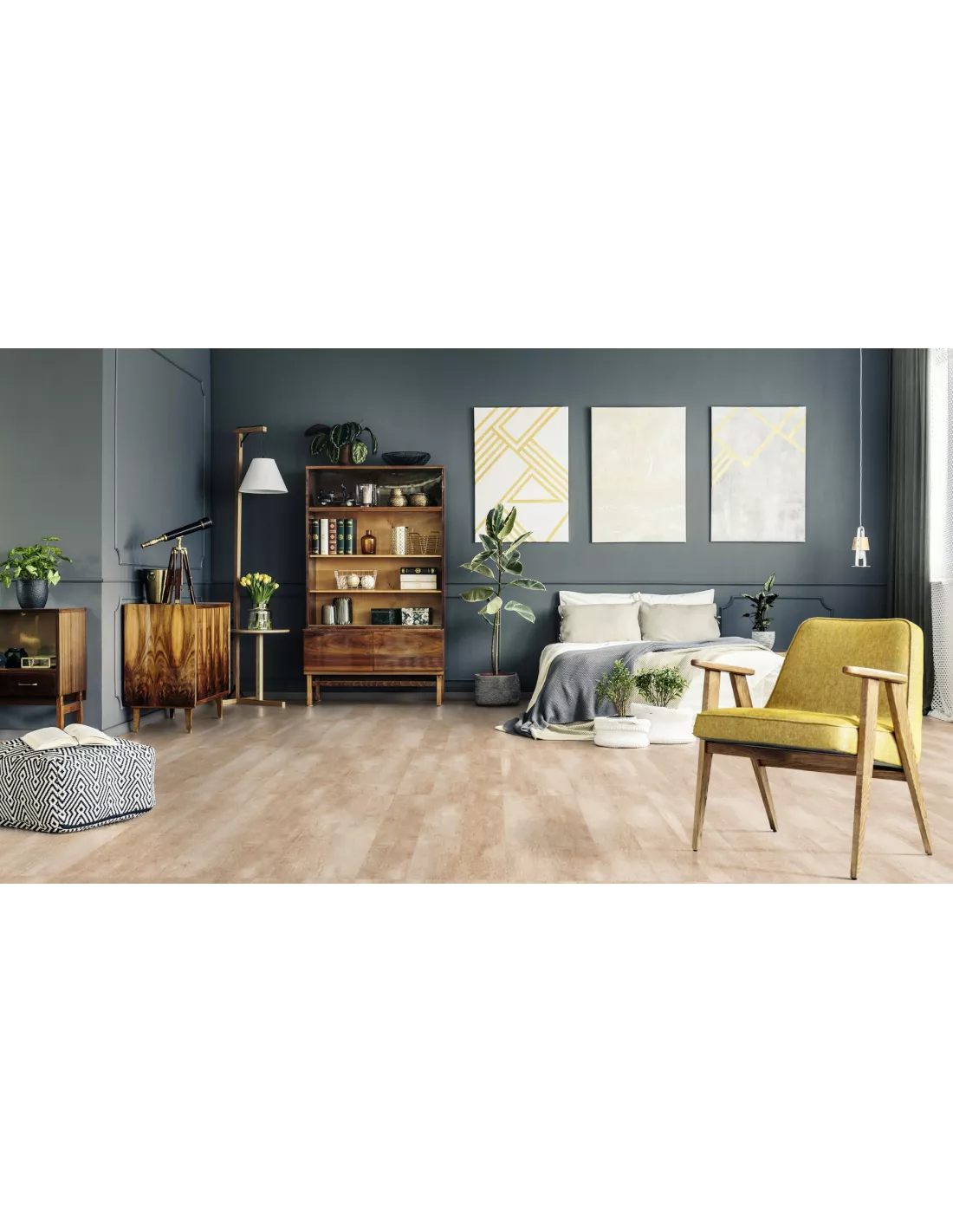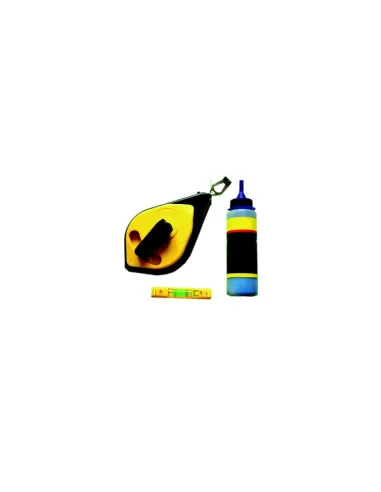 Sada vodováhy, značkovací šňůry a křídy pro přesnější měření a vyznačení různých vzdáleností.