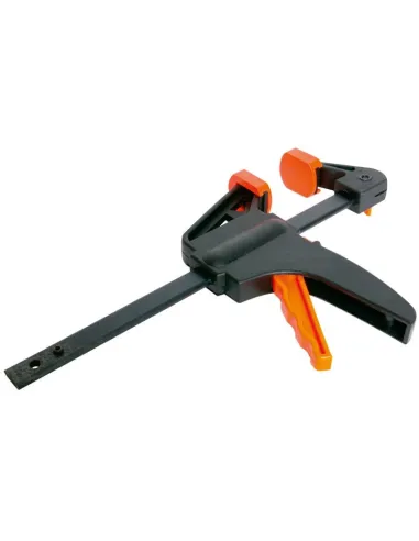Výhoda svěrky Quick-grip je rychlá obsluha svěrky, unniverzální využití k sevření a rozepření, s dokonalým přilnutím k materiálu díky gumovým návlekům na čelistech svěrky. Systém dovoluje jednou rukou sevřít materiál s upínací silou 135 kg. Rameno lze použít k rozepření. Odjištění svěrky pomocí tlačítek.