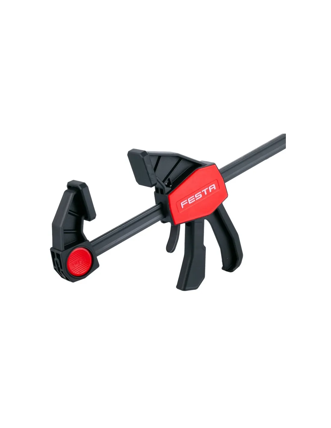 Rychloupínací svěrka QUICK GRIP. Tvrzená ocelová vodící lišta. Plastová rukojeť. Rychlé upínání a rozevírání.