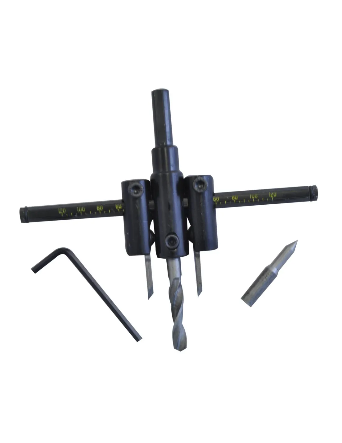 Nastavitelný vykružovací vrták do dřeva pro průměry od 30 do 120 mm. Rychlé přenastavení pomocí přiloženého imbusu.
