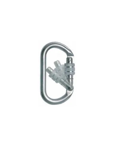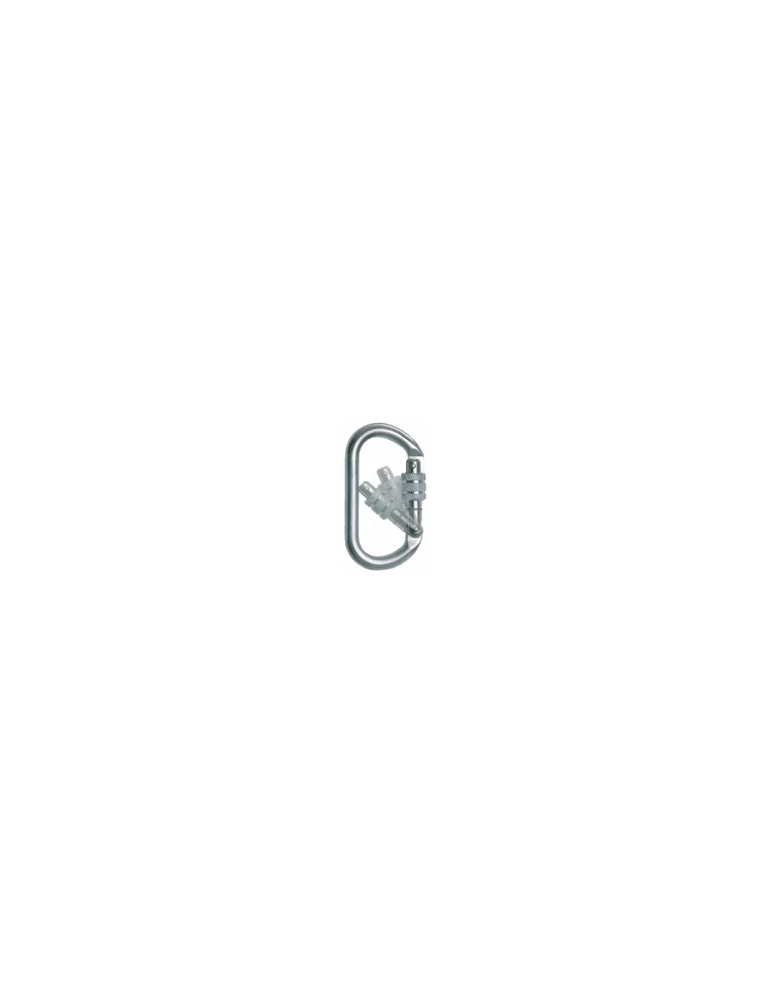 Bezpečnostní ocelová karabina AZ011 má klasický oválný tvar a je vyrobena z pozinkované oceli. Šroubovací pojistný uzávěr s pružinou se dá otevřít na štěrbinu 18 mm. Atestovaná karabina je součástí systému horizontálního nebo vodorovného zajištění proti pádu.
