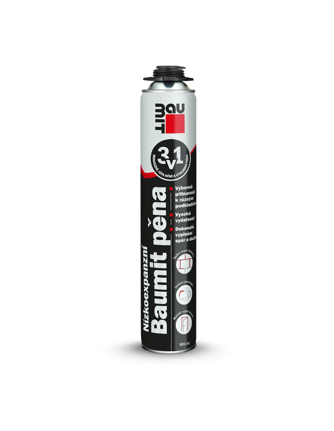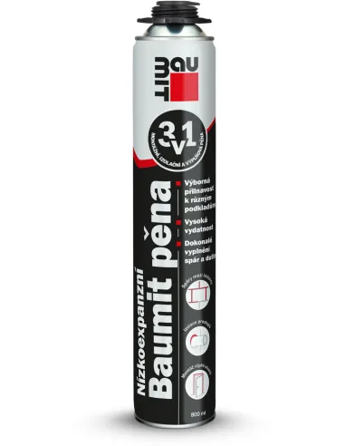 Nízkoexpanzní montážní pěna na bázi polyuretanu připravena k použití pomocí aplikační pistole. V průběhu vytvrzování nepůsobí tlakem na okolní materiály. Vhodná pro interiér i exteriér.