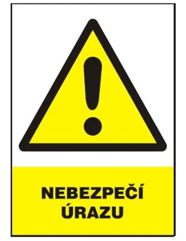 Bezpečnostní tabulka. Tyto tabulky musí být umístěny na místa, na nichž hrozí nebezpečí úrazu způsobené různými vlivy a varují tak před nebezpečím vzniku takového úrazu.