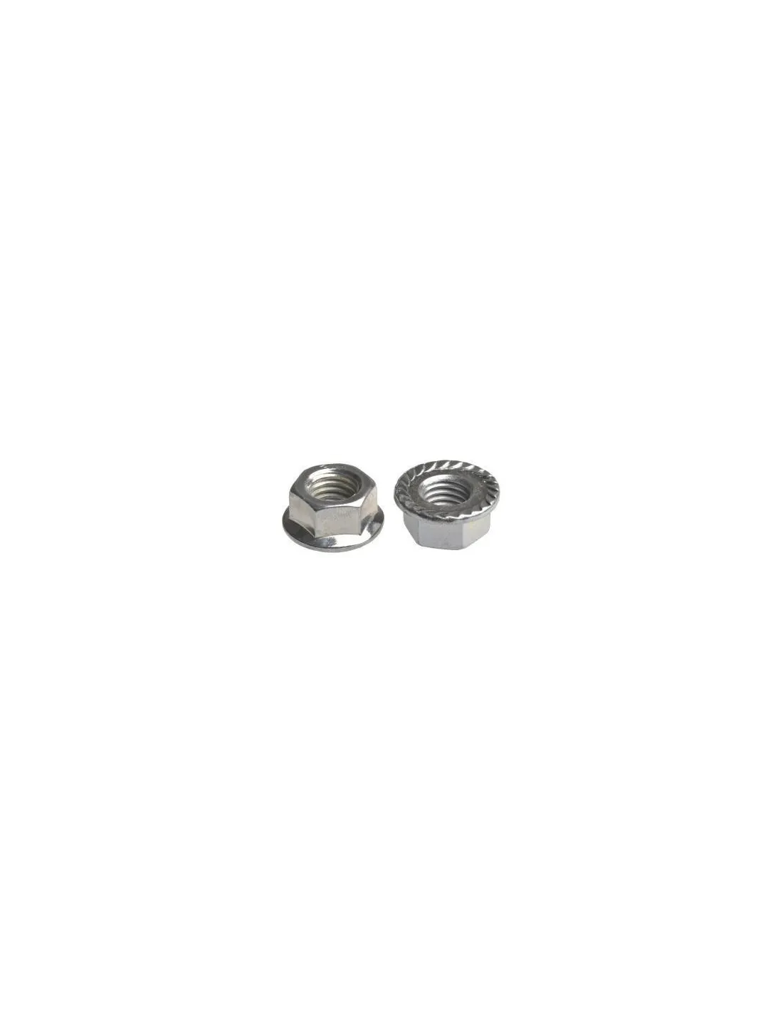 Šestihranné matice s ozubeným límcem se používají k jednoduchému zajištění šroubového spoje, kdy se ozubení na spodní straně límce zaryje do povrchu materiálu a tím zabraňuje uvolnění matice.