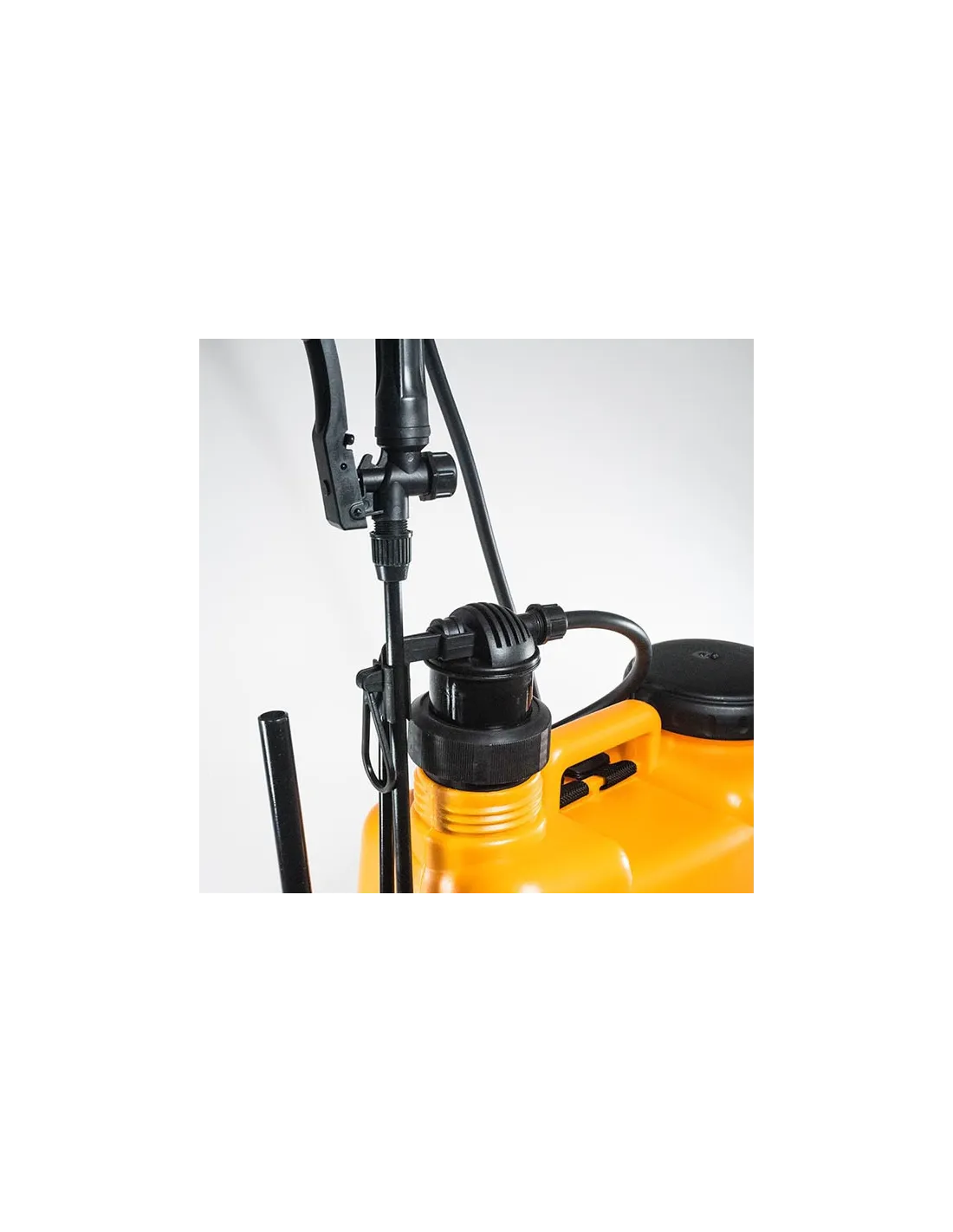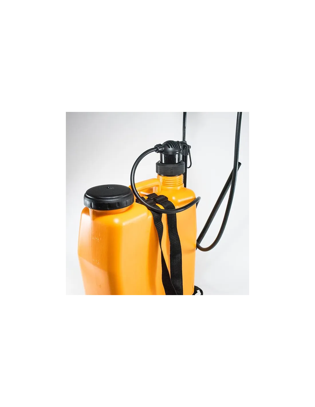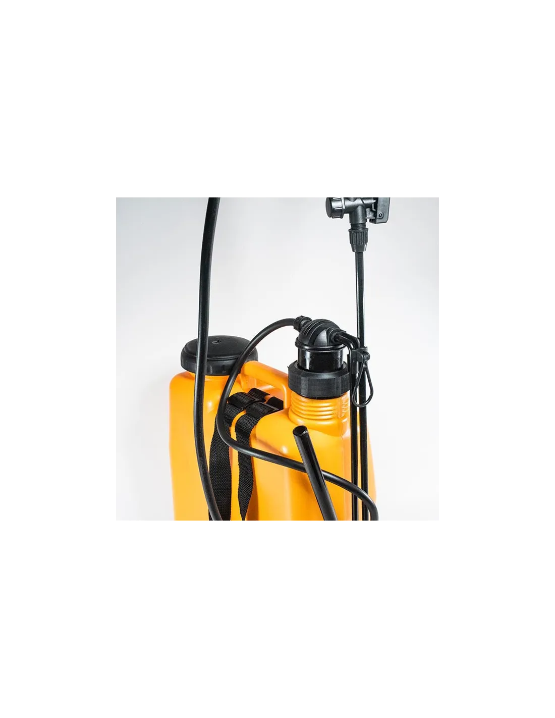 Tlakový postřikovač zádový s nádržkou 16 l postřiku pro dlouhou práci bez častého doplňování. Možnost nastavení síly průtoku tryskou a trvalý nebo krátkodobý postřik. Nastavitelné popruhy a možnost přestavění páky na pravou stranu (pro leváky). Regulátor průtoku na rukojeti. Vysokotlaká nádoba odolná proti chemikáliím.