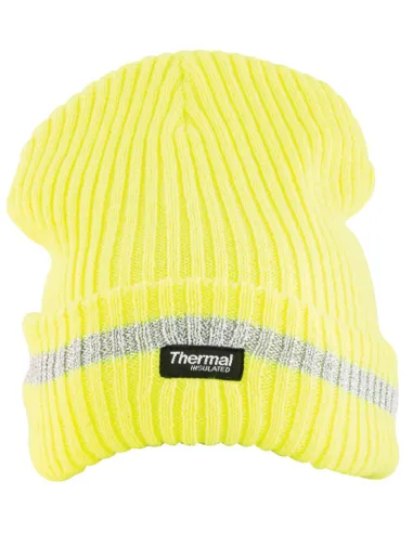 Zimní pletená čepice s fleecovou podšívkou . Žebrovaný vzor. Reflexní pruh pro lepší viditelnost.