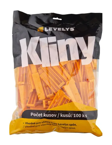 Plastové vyrovnávací klíny jsou vyrobeny z protvřídních materiálů, jejichž složení bylo testováno s cílem zabezpečit dokonalou rovnováhu mezi pružností a odolností. Spodní plocha klínu vyvíjí na dlaždice silný a rovnoměrný tlak během celé doby tvrdnutí l Sklon klínu je navržen tak, aby se při nasazování spony přizpůsobil maximálnímu tlaku jakkoli silné dlažbě. Klíny mají vroubkovaný povrch, díky němuž dlažbu lépe fixují a snáze odstraňují.Plastové klíny využijete:v interiéru i exteriéru,na schodech a sok
