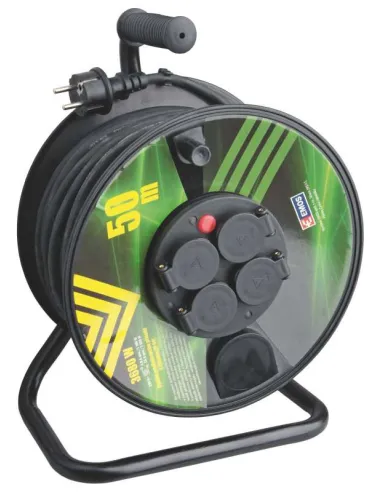 Kabelový buben černý - guma /4 zásuvka/ 50 m