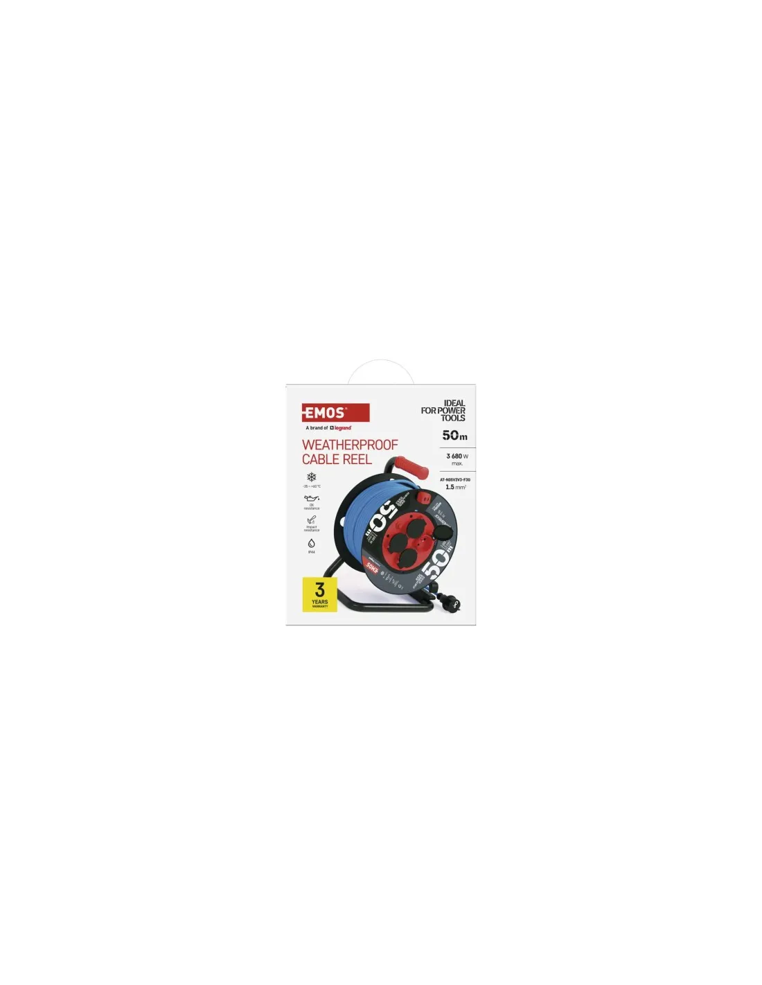 Mrazuvzdorný kabel s plastovou izolací - pro střední namáhání, v prostředí obyčejném, studeném i vlhkém (odolný proti ztíženým klimatickým podmínkám a teplotám až do -35°C). Je odolný vůči oleji a UV záření. Krytí IP44 umožňuje použití ve venkovním prostředí.Vodicí oko pro snadné navíjení kabelu.
