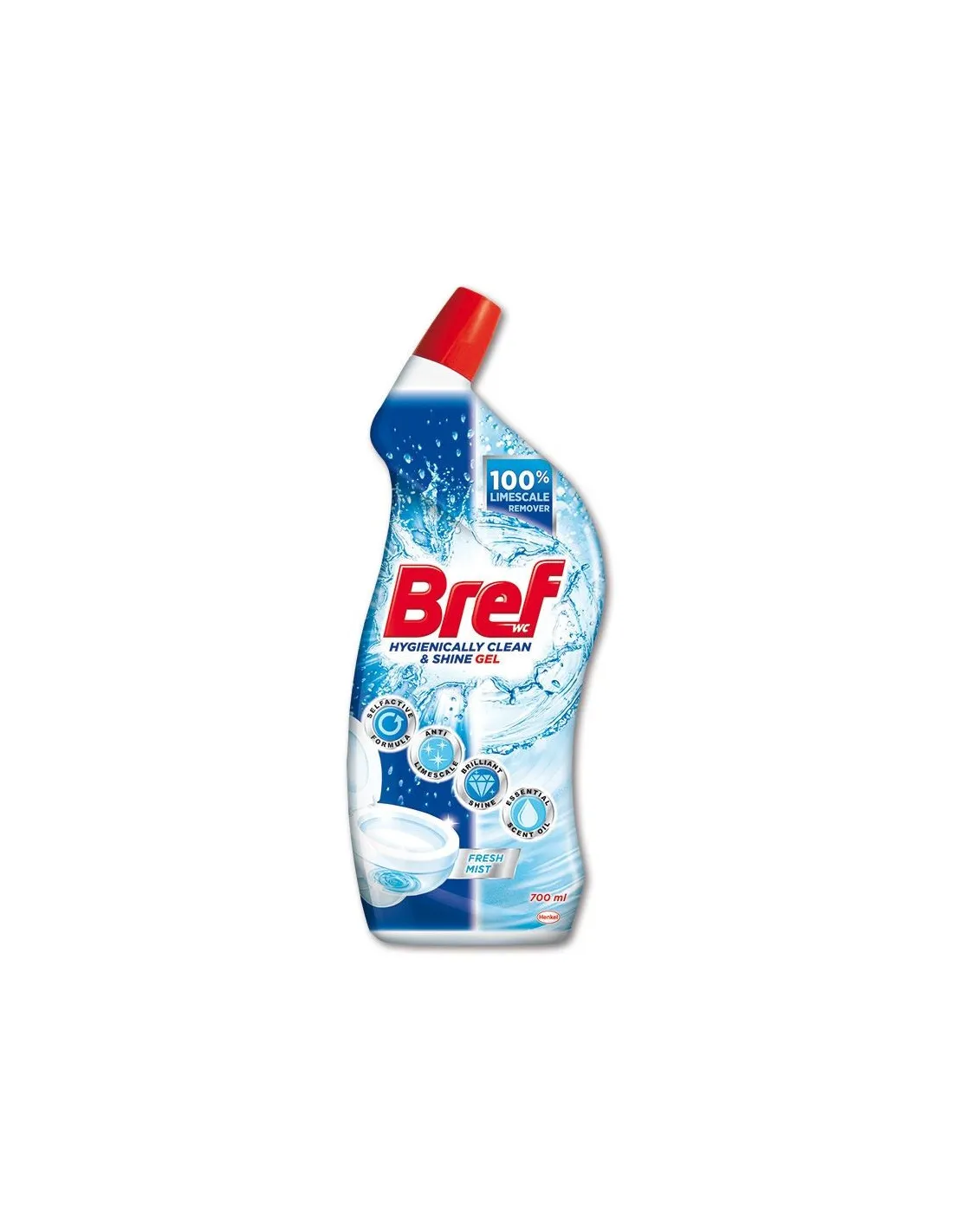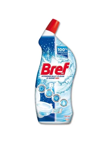 Prostředek Bref hygiene gel je účinný WC čistič, který odstraní vodní kámen a zanechá dlouhodobou příjemnou vůni na toaletě.