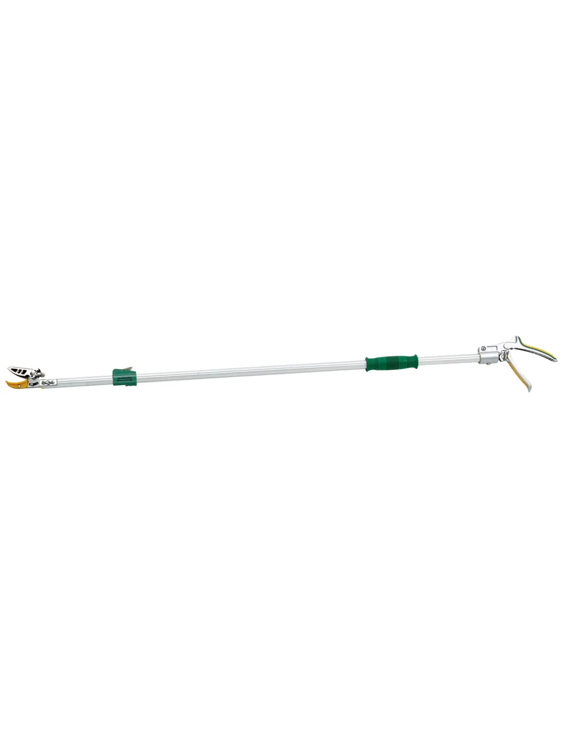 Nůžky se dají vysunout po 6 sekcích. Zubové úchyty na pružince slouží pro zajištění ustřižené větve. Plastovou rukojeť je možné posunout po celé délce tyče. Násada je otočná o 90°. Díky převodu stačí lehké stlačení páky. Odjištěním aretace prodloužíte délku rukojeti až na 2 m. Čepele je možné vyměnit za prořezávací pilku.
