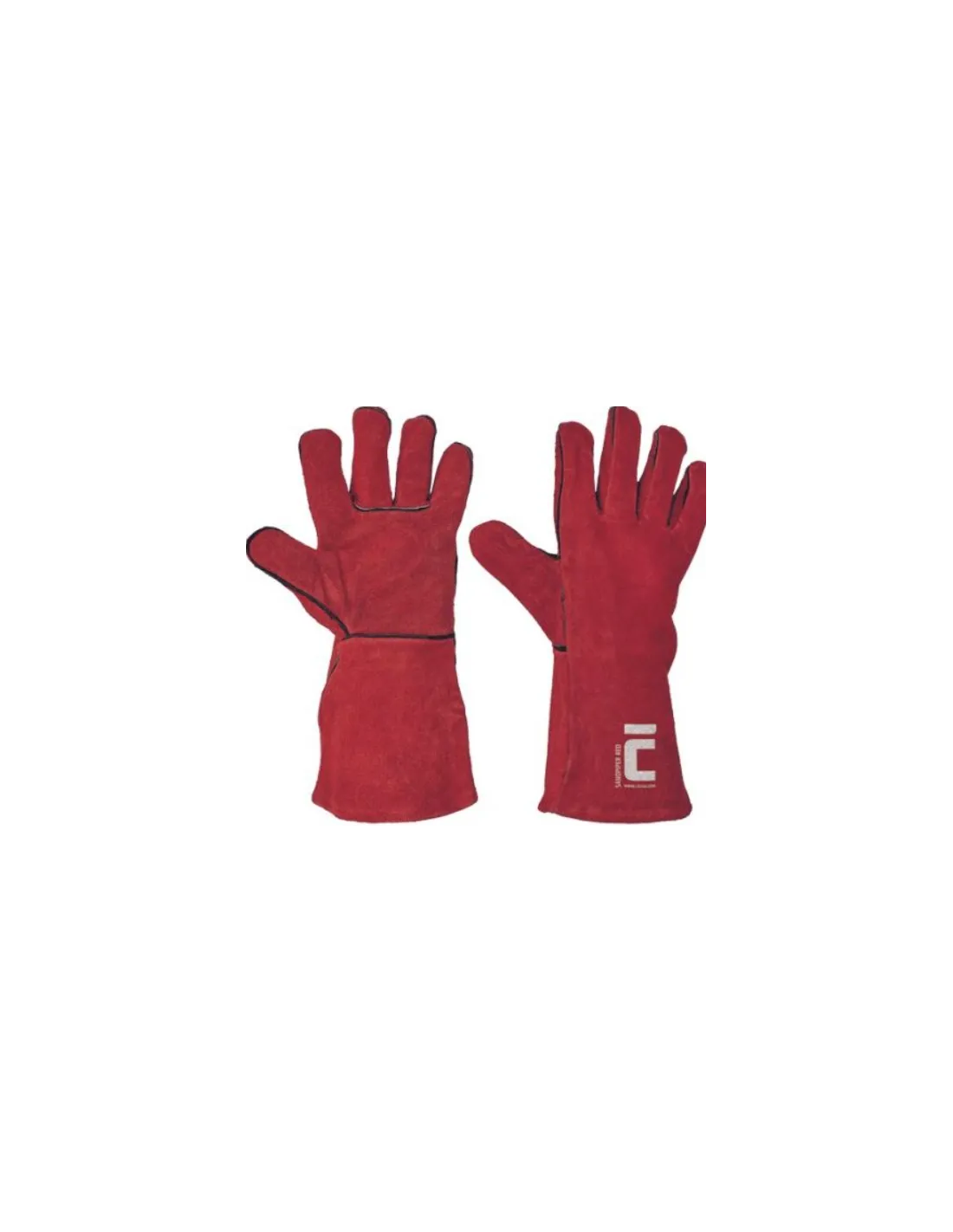 Celokožené rukavice z hovězí štípenky v délce 35 cm, s bavlněnou podšívkou a krytými švy. Certifikát: svářečské práce - typ A.