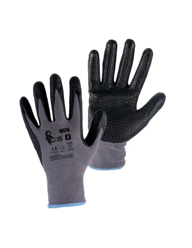 Bezešvé rukavice z jemného směsového úpletu, dlaň a prsty povrstveny nitrilovou pěnou s prodyšnou úpravou MICROFOAM a nitrilovými terčíky pro lepší úchop. Odvětví: automobilový průmysl, logistika, skladování, hobby, práce s kluzkými předměty, zahrada, stavebnictví, komunální služby, montáž a balení malých součástek.