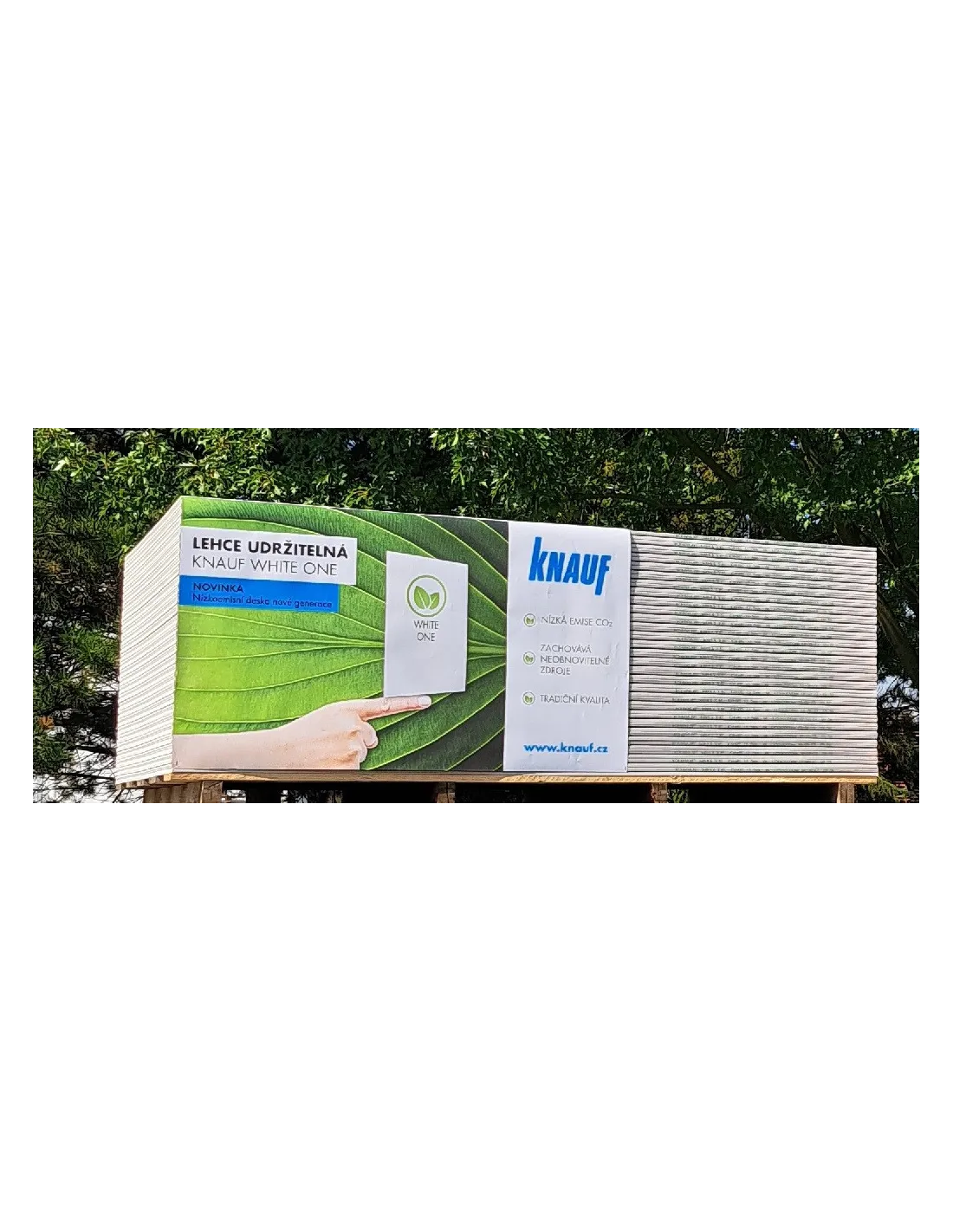 Sádrokartonová deska vyrobená s ohledem na udržitelnost zdrojů a snížení CO2 emisí.Hrana HRAK.