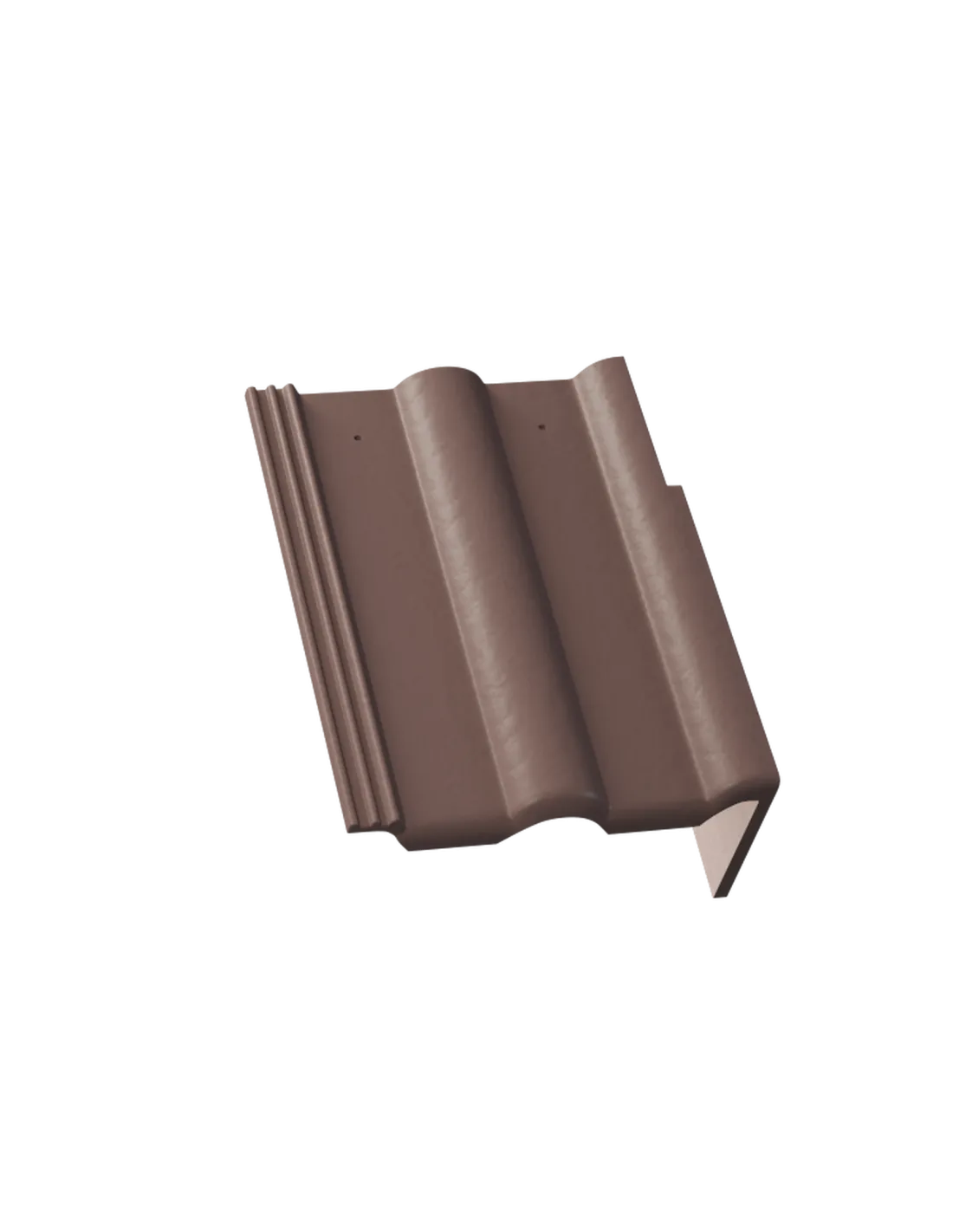 Střešní taška okrajová pravá představuje elegantní pravé boční ukončení střešní plochy. Taška okrajová se vyrábí jako pravá a levá s bočním okrajem, který je opatřen výřezem pro vzájemné překrytí a posun podle sklonu střechy.