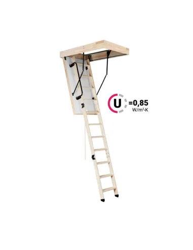 Extra zateplené půdní schody s hodnotou prostupu tepla U=0,85W/m2K k použítí do staveb se standardními energeticky úspornými nároky. Schody Extra mají zateplené 46mm silné víko, které je z pohledové strany opatřeno bílou HDF deskou. Víko je zatepleno 40mm polystyrénem.