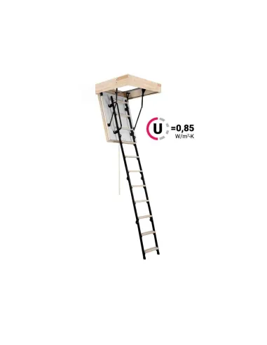 Schody Mini Extra mají zateplené 46 mm silné víko, které je z pohledové strany opatřeno bílou HDF deskou. Víko je zatepleno 40 mm polystyrénem. Schody mají 4-dílný kombinovaný výlezový žebřík, nášlapy jsou dřevěné a mají protiskluzovou úpravu.