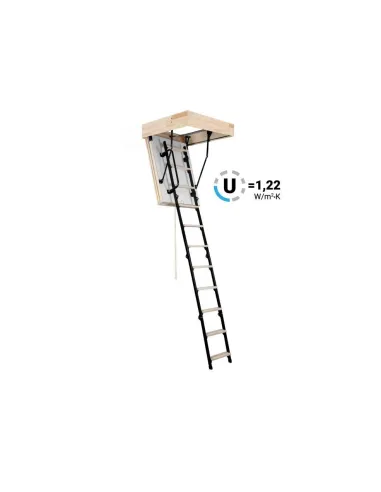 Schody Mini mají zateplené 26mm silné víko, které je z pohledové strany opatřeno bílou HDF deskou. Víko je zatepleno 20mm polystyrénem. Schody Mini jsou vyráběny pro maximální výšku podlaží 265cm a mají 13,5 cm vysoký dřevěný rám. Součinitěl prostupnosti tepla U = 1,22W/m2*k .