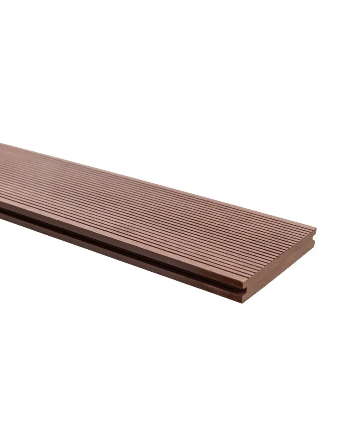 Dřevoplastové terasové prkno WPC Strong je bezúdržbové a odolné proti hnilobě, plísním, dřevokazným houbám a hmyzu. Univerzální exteriérová WPC prkna 3D jsou vyrobena z odolného dřevoplastu neboli WPC (Wood Plastic Composite). Vyrábí se tzv. extrudací = vytlačováním komponentů pod tlakem a teplotou. Jde o kombinaci dřevěných pilin (60 % přírodní dřevěná vlákna) a zdravotně nezávadného termoplastického polypropylenu (40 %). Tento terasový materiál vytvoří bezúdržbovou, odolnou terasu bez třísek, příjemnou na dotek i na pohled. Svým vzhledem imitují dřevo, ovšem bez nutnosti péče typické pro dřevěná prkna, jsou odolná plísním, houbám, hnilobě i hmyzu. WPC prkna Guttadeck Strong 3D jsou oboustranně pochozí, sami si zvolíte, jaká vnější strana bude použita, zda drážkovaný dekor nebo vzhled dřeva. Nenáročná pokládka a praktické vlastnosti terasových prken zaručují jejich dlouholeté spokojené užívání. Nikdy netvoří třísky, nedrolí se, nekroutí ani neláme - díky tomu poskytují nejvyšší úroveň bezpečnosti pro vás a vaše děti. Kromě zmiňované terasy, kde je jejich použití nejčastější, se využívají pro plochy kolem bazénů, jako výplň zábradlí či vrat, obložení stěn, zahradních lavic apod.Orientační návod na výpočet množství materiálu:šířka desky = 140 mm; mezera mezi dvěma deskama je 7 mmVzdálenost hranolů se pokládá v osové vzdálenosti max. 300 mm.Montážní sada se pokládá u každého dotyku WPC desky s podkladním hranolem orientačně 21 ks/m2.Příklad výpočtu pro terasu 5 800 x 4 300 mm (24,94 m2):terasová prkna WPC Guttadeck Strong: 5 800 : 147 (šířka desky sečtena s mezerou) = 40 prken (délky 2 900 mm) x 1,5 (pro potřebou délku terasy 4,3 m a říznout na půl) = 60 terasových prken Na překrytí bočních stran terasy se též používají terasová prkna = 6 ks terasových prkenpodkladní hranoly WPC Guttadeck Strong: 4 400 : 300 = 14 + 1. řada = 15 hranolů (hranoly jsou dlouhé 2 900 mm) x 2 (nutno dát 2 hranoly za sebou kvůli délce 5 800 mm) = 30 podkladních hranolůstartovací sada WPC Guttadeck Strong: v závislosti na počtu řad podkladních hranolů = 14 ksmontážní sada WPC Guttadeck Strong: 40 (počet otvorů mezi prkny) x 13 (počet řad podkladních hranolů) = 520 ks montážní sadyukončovací lišty WPC Guttadeck: v závislosti na počtu stran 6 ks (délky 2 900 mm)MontážTerasa se pokládá na štěrkové lože, které je ohraničeno betonovým základem. Štěrkové lože samo působí jako drenážní systém. Nosiče by se měly pokládat rovnoběžně se spádem terasy. Je důležité dodržet vzdálenost mezi podkladními hranoly max. 300 mm. WPC prkna se montují ve spádu 1,5 %. Pokud máme připravené podkladní hranoly, začínáme prvními dvěma prkny, které pomocí montážní sady přichytíme k podkladním hranolům. Je důležité neustále kontrolovat požadovaný spád, směr a srovnávat nosiče tak, aby vše bylo dobře podložené. Poté, co se přichytí první prkno, tak se z druhé strany prkno přichytí a pokračuje se postupně dalšími prkny v řadě za sebou. Nářadí: pila na dřevo, vrtáky. Ukončovací lišta se přichytává pomocí např. nerez. vrutů V2A, kde si předvrtáte otvor 4 mm.