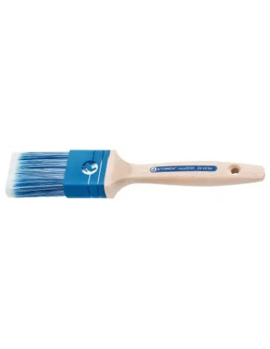Profi štětec na vodou ředitelné barvy a laky. Speciální speciální syntetické štětiny mixují modrou / bílou barvu s nerezovým plastovým rámem, který je bezpečný pro zdroje a nelakovanou dřevěnou rukojetí. Špičková kvalita s modrobílá, plně syntetická směs štětin, v délce a pružnosti ideálně vhodné pro zpracování nejnovější barvy na bázi vody. Trvalá vysoká rozměrová stabilita a odolnost proti oděru s 5x delší životností než přírodní štětiny.