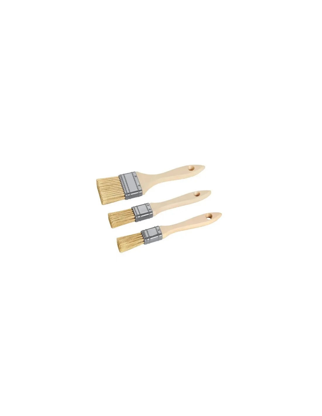 3dílná sada plochých kartáčů v šířkách 20, 25 a 30 mm. Ploché kartáče jsou vyrobeny z čistých PET štětin a zakončeny pohodlnou dřevěnou rukojetí.
