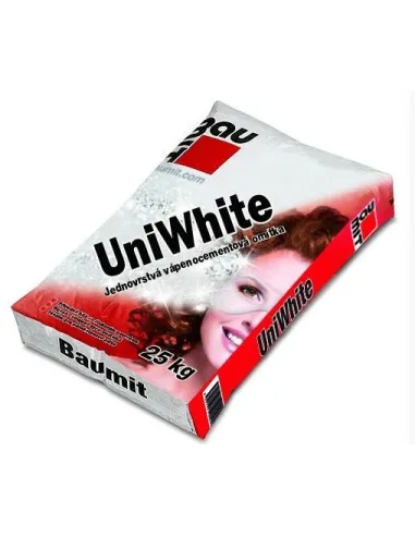 Jednovrstvá strojově i ručně zpracovatelná vápenocementová omítka s bílým cementem pro exteriéry i interiéry, vhodná zejména pro systémy přesného zdění.