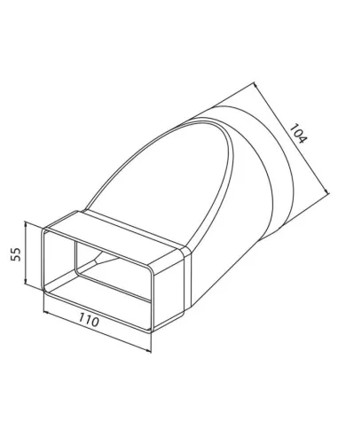 Přechodový kus je vhodný k propojení kulatého a plochého kanálu při zmenšeném prostoru. Pro připojení na kulatý kanál je třeba použít spojku CVO 107. Spojování jednotlivých dílů se provádí prostým zasunutím. Je možné spoj utěsnit silikonem nebo lepicí páskou.