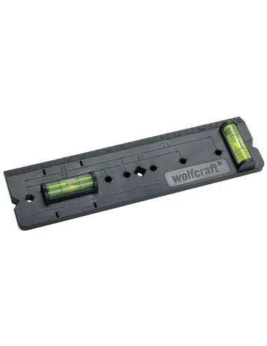 K preciznímu určení polohy vrtání duté stěnové krabice vhodné pro všechny běžné kombinace zásuvek přesné vyvážení díky horizontálním a vertikálním libelám k bezproblémovému osazování bodů označení pro normované odstupy (57, 71 a 91 mm). Integrovaná stupnice k měření odstupu, např. mezi vypínačem a dveřními zárubněmi balení: připevněná na kartě.